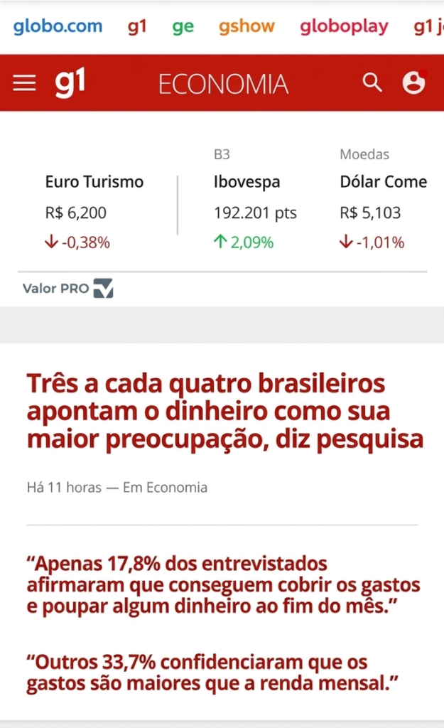 75% dos brasileiros dizem que a maior preocupação é o dinheiro.